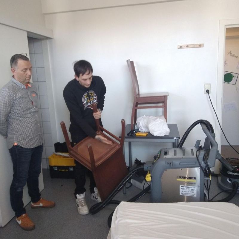 - Na het stomen en stofzuigen van de eerste imaginaire quarantainezone, herhaal je de stappen in de tweede quarantainezone. Het materiaal van de tweede quarantainezone kan verplaatst worden naar de eerste quarantainezone.